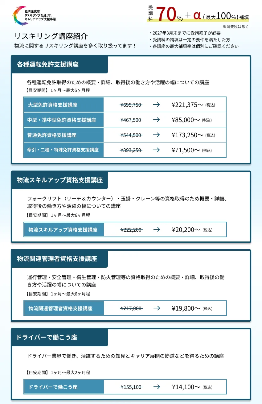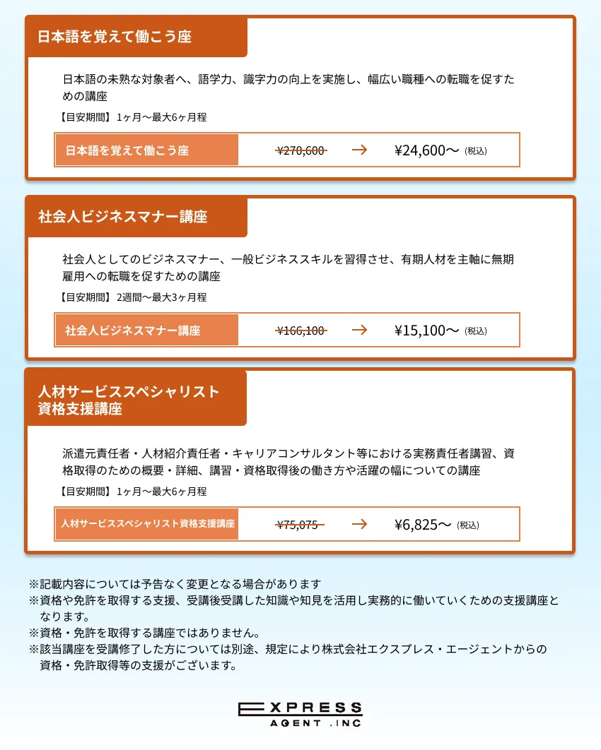 各講座の料金表はこちら